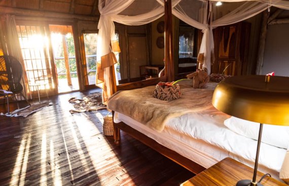 Perchées au milieu de magnifiques arbres sur un terrain surélevé offrant une vue imprenable sur les plaines inondables du Botswana, 4 grands chalets au toit de chaume sur pilotis vous attendent.